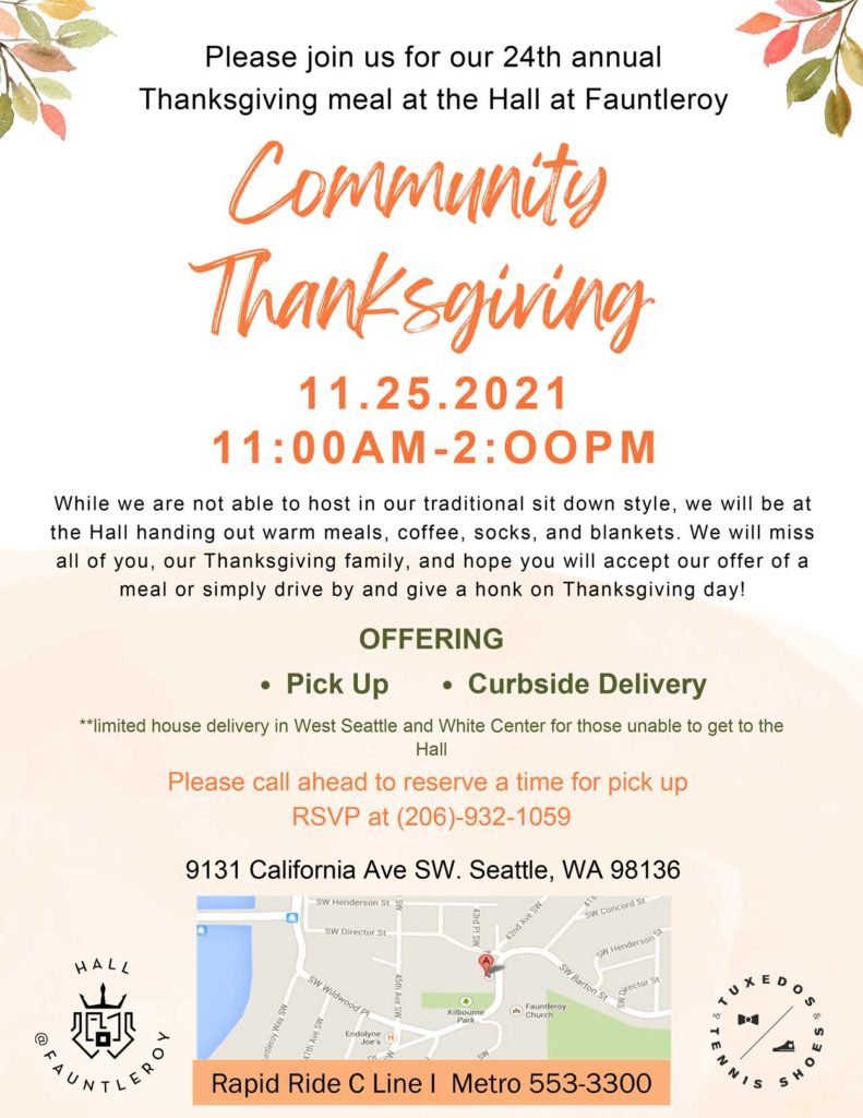 Free Thanksgiving Meal Pick Up At Hall At Fauntleroy On Thanksgiving Day Nov 25 The White Center Blog